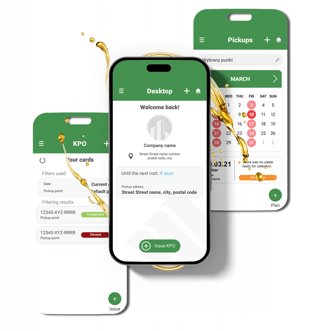 من أجل تلبية احتياجات عملائنا، أنشأنا تطبيق EMKA OIL. وبفضله، نضمن لأصحاب المشاريع، بما في ذلك صناعة خدمات التغذية بأكملها، سهولة إدارة عملية جمع الزيوت بأكملها، مما يلغي الإجراءات الشكلية غير الضرورية ويسهل المهام اليومية.